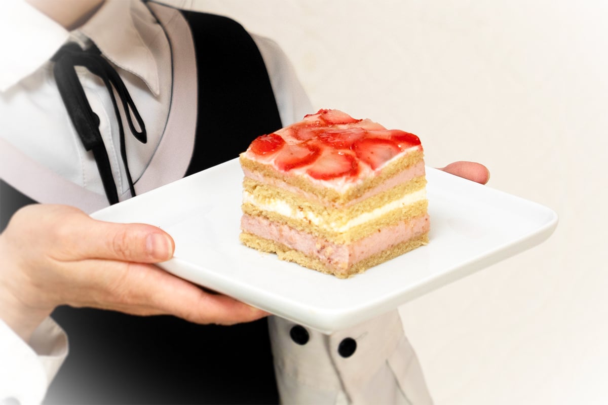 ふんわりと軽やかないちごのムースとコクのある生クリーム、そして米粉で仕立てたしっとりスポンジを丁寧に重ねました。